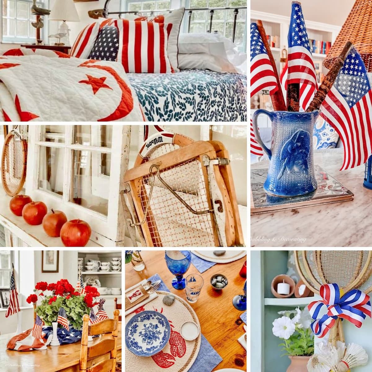 From DIY spindle flag displays to coastal lobster tablescapes, basket centerpieces, and even vintage tennis racket decor, these ideas are perfect for Memorial Day, the 4th of July, and everything in between.