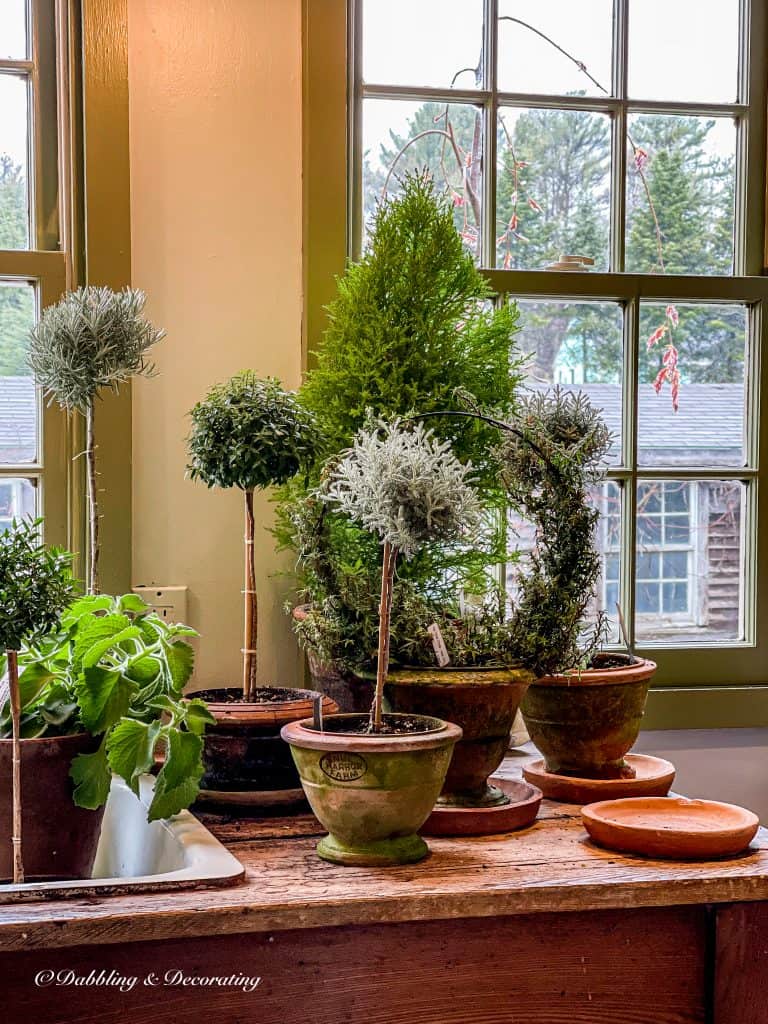 One of the reasons I return to Snug Harbor Farm each spring is for the topiaries, rows upon rows of charming, sculpted greenery sitting perfectly in weathered terracotta pots. Their greenhouses are filled with inspiration, from petite ivy spirals to larger, sculptural topiaries, each one looking like it belongs in a cozy cottage kitchen, a farmhouse living room, or styled atop a round entry table layered in vintage finds.