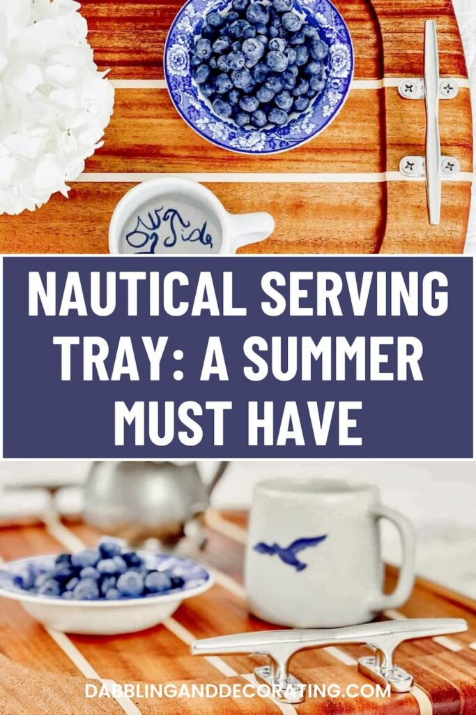 Try styling your nautical serving tray with blue and white vintage dishes, fresh hydrangeas, and seasonal fruits like Maine blueberries for a cozy coastal breakfast. You can also use it on a porch or patio with candles and seashells for easy summer entertaining.